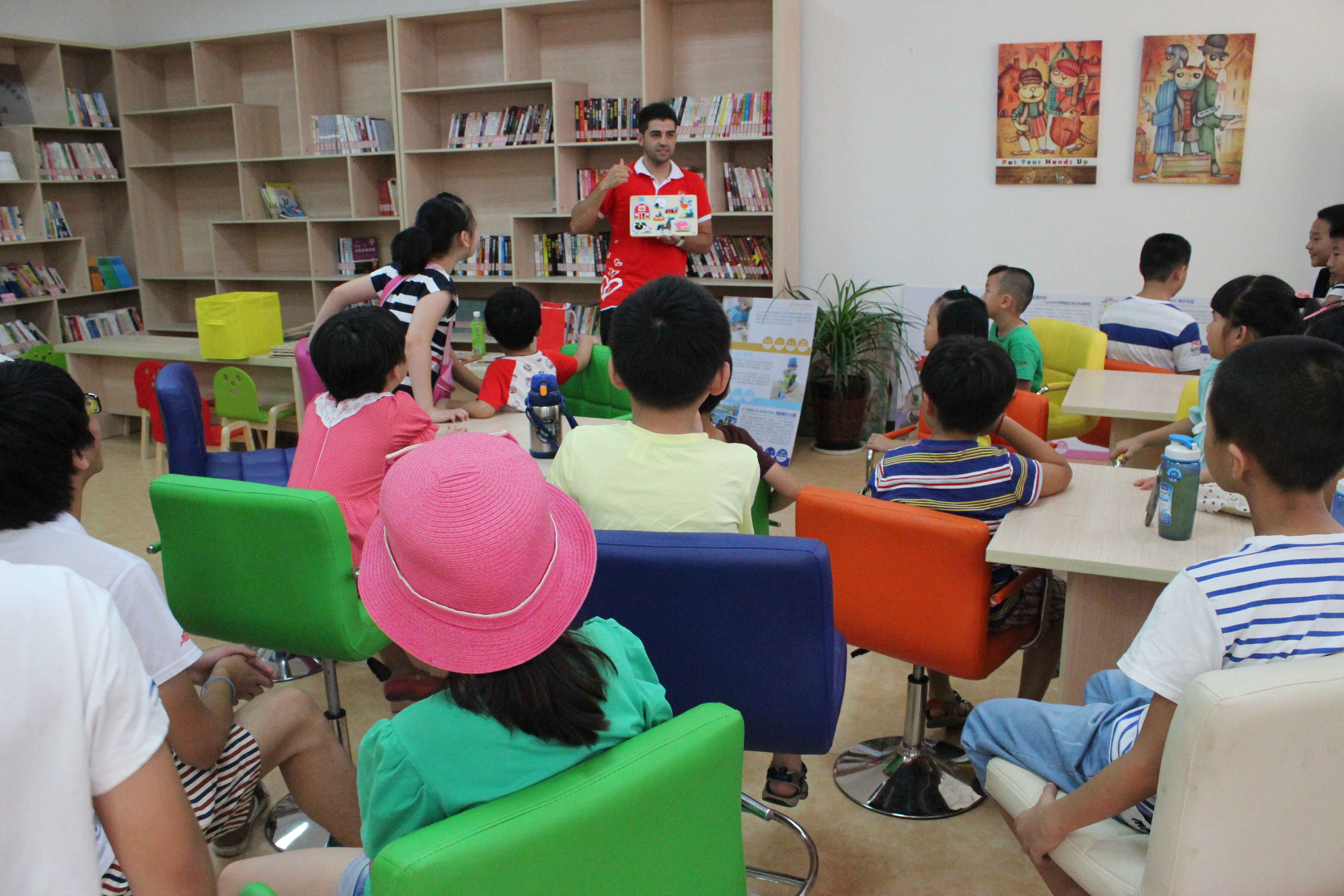 热情的巴西人Costa来自怡人玩具,此次来到社区,给假日学校的孩子们带来了一场字母外教课。