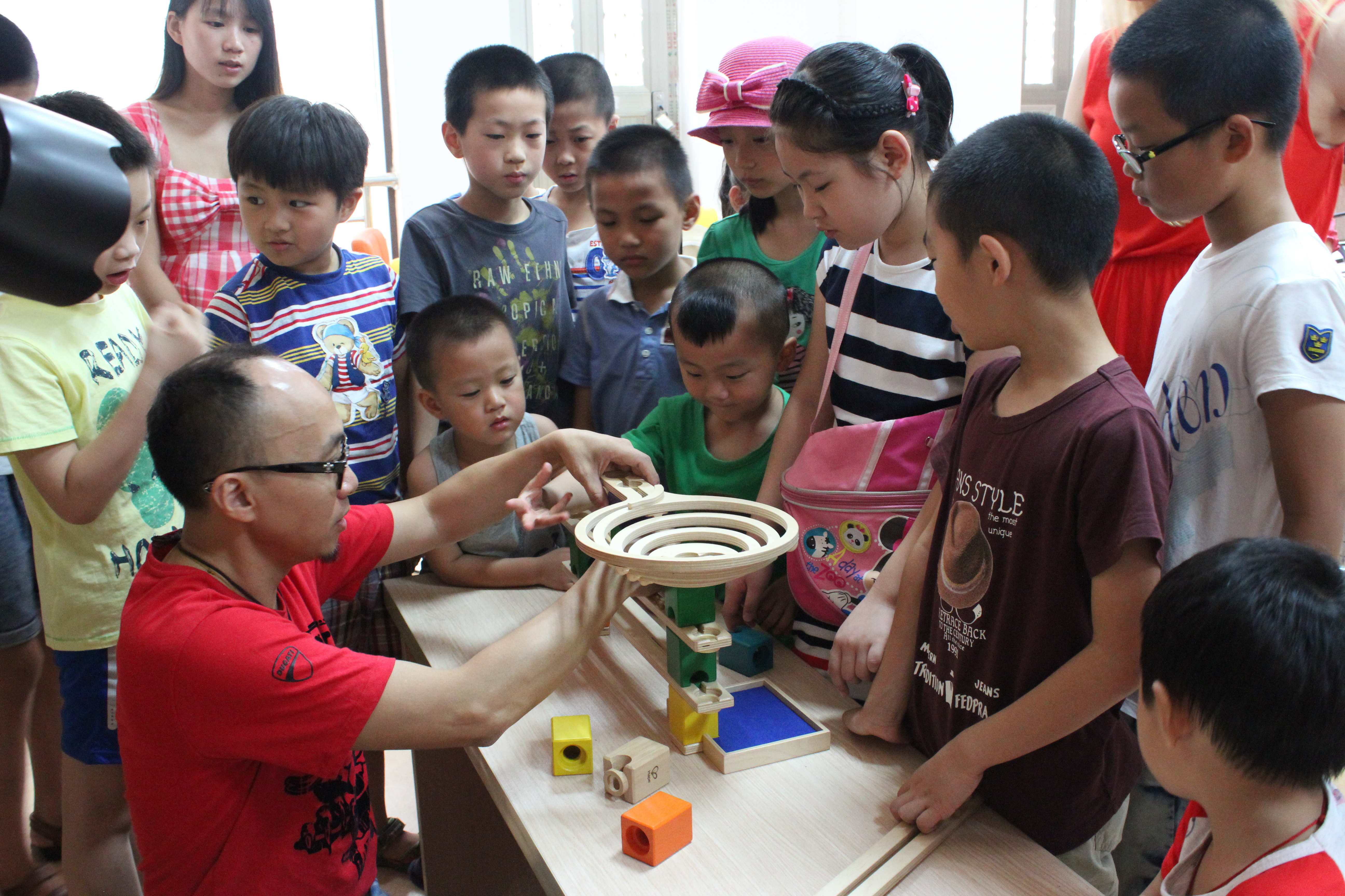 7月23日,怡人玩具走进凌霄社区假日学校,苏暐峰老师带来益智玩具“夸得瑞拉”,引来学生们的头脑风暴。