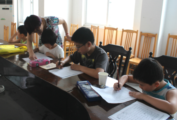 课堂用具很简单,一张纸、一支铅笔,再加上足够的耐心和恒心,静下心来一笔一划的书写。老师在旁边细细的讲解,指点出每个人书写上的小缺点,还时不时的示范几个字,让孩子们临摹。老师说:“一手好字的写成不是一朝一夕的事,这跟个人的毅力是离不开的,我们要经常鼓励孩子,让他们看到自己的进步和成长,这会给他们添加不少无形的动力。”