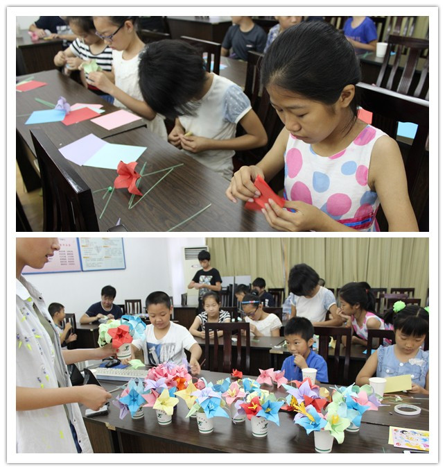 7月24日,芦南社区假日学校的小朋友们上了一节生动有趣的折纸课。在柴桥街道中心幼儿园刘老师的带领下,小朋友们一个个开始折起百合花。一张张五颜六色的纸经过一番“折腾”后变成了一朵朵美丽的百合花。一开始,有些基础差的小朋友不知道从何下手,后来在老师的帮助下,他们的作品便初具模型。
