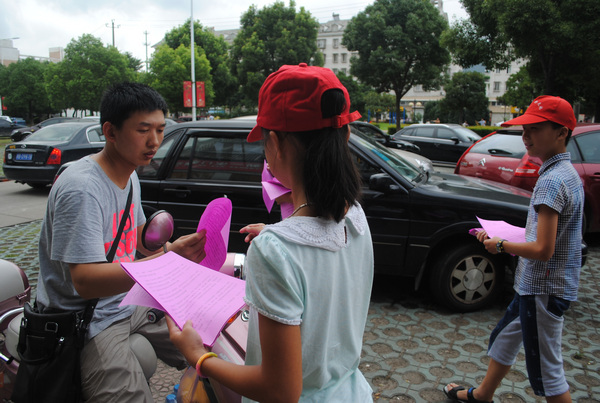 活动中,大小志愿者在辖区内菜场等人口密集处向居民发放《五水共治,从我做起》宣传资料。志愿者们一边发放宣传资料,一边向居民解释“五水共治”,引导居民参与其中。