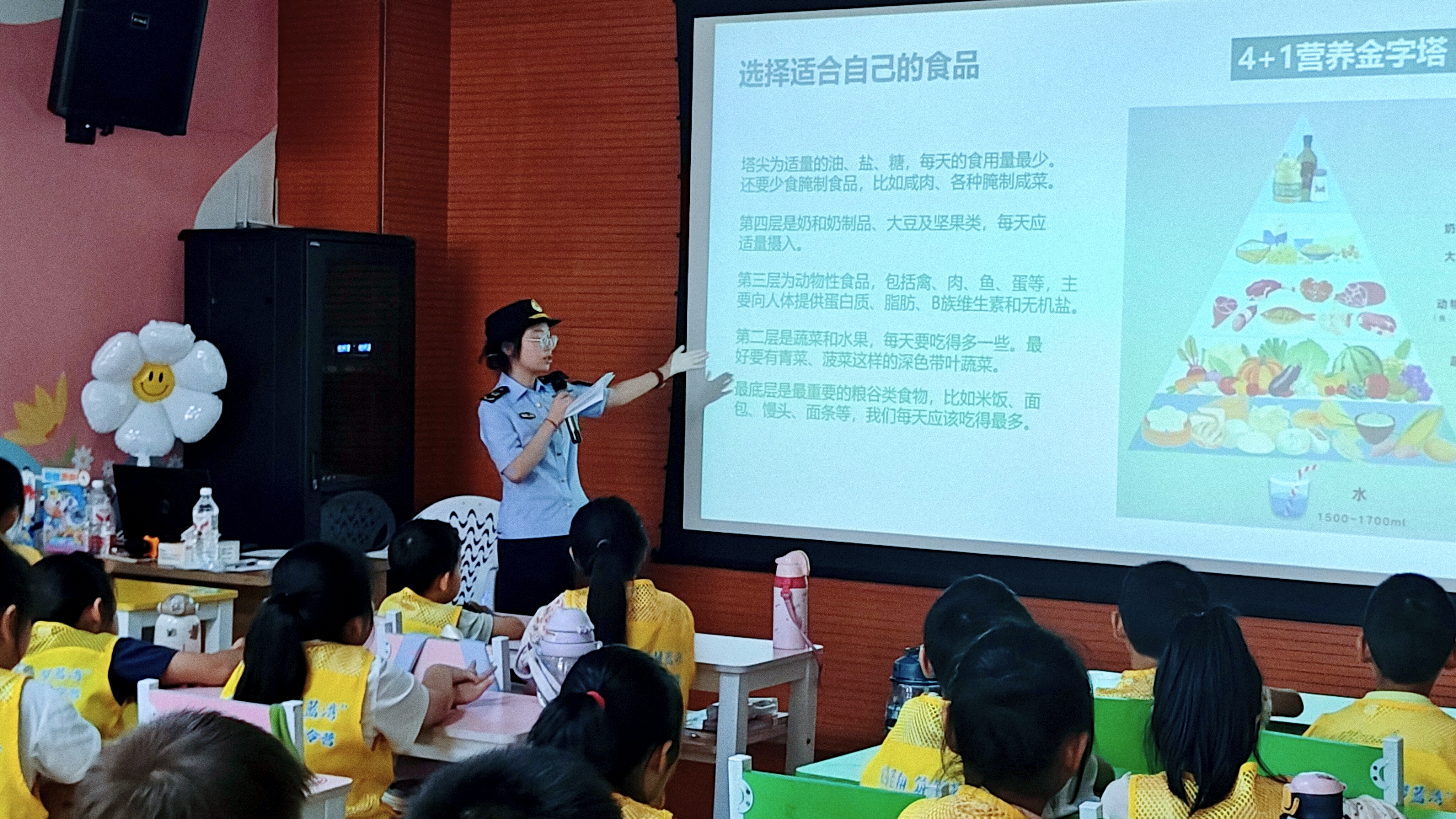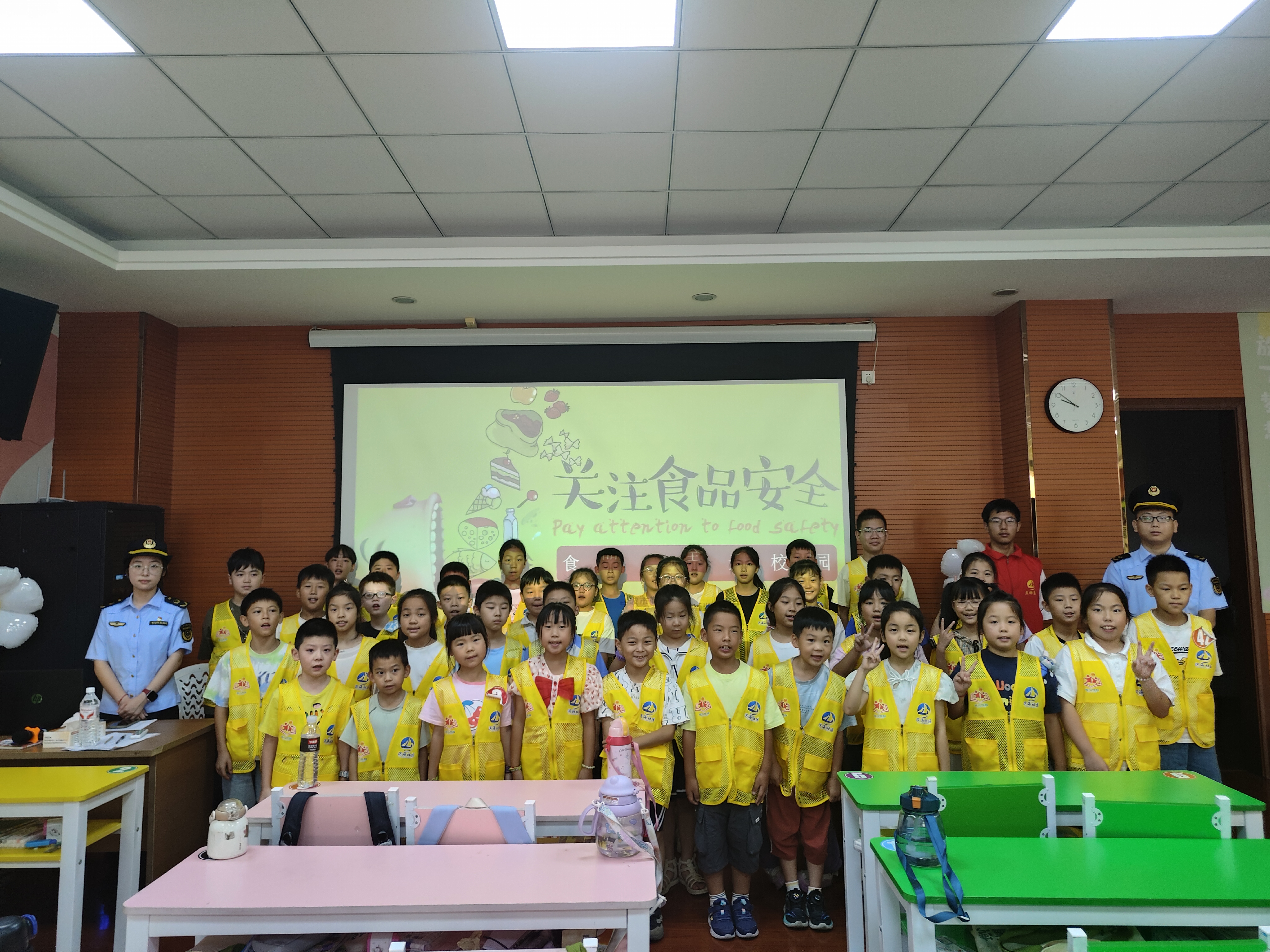 筑牢健康防线,不仅要懂得“安全选”,还要学会“怎么吃”。“我们每天吃的食物,如何搭配才更健康?”课堂上,工作人员清晰地展示了科学的“营养金字塔”结构。通俗易懂的讲解,配合直观的图示,让“小候鸟”们一下子看懂了如何搭配一日三餐才营养又健康。课程最后,齐声朗诵的《食品安全歌》和饭前洗手、生吃瓜果洗净、不饮生水等卫生习惯的强调,进一步巩固了孩子们的安全意识。 这堂干货满满的食安课,用生动讲解、互动问答和趣味歌谣,在“小候鸟”心中深植健康饮食理念。课程结束时,孩子们纷纷表示要做“食品安全小卫士”,把学到的知识带回家,守护自己和家人的健康餐桌。